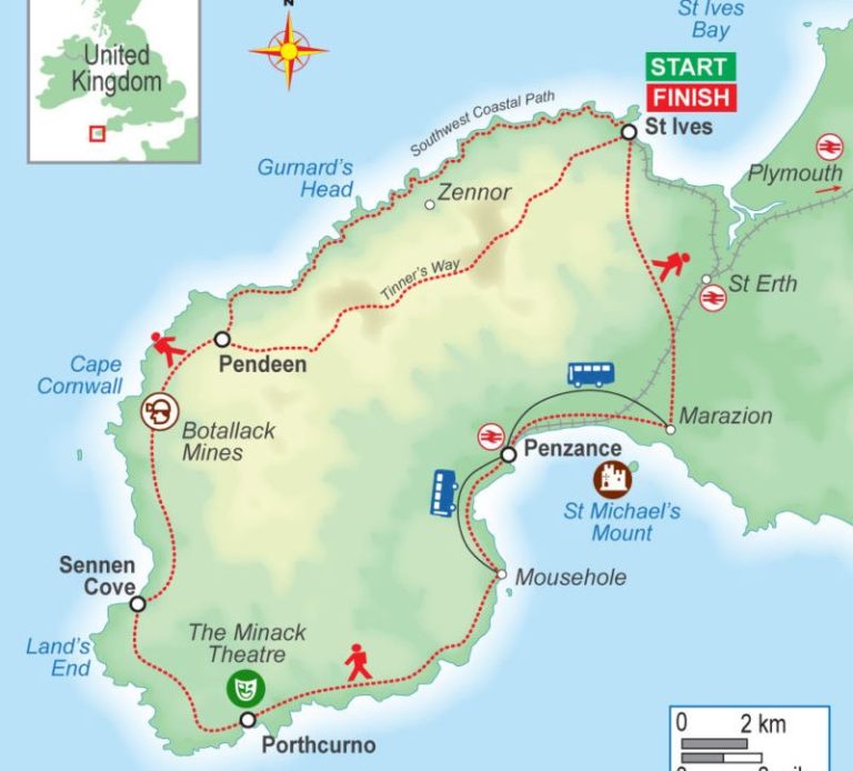 - Dramatic coastal walk around the Land's End peninsula.